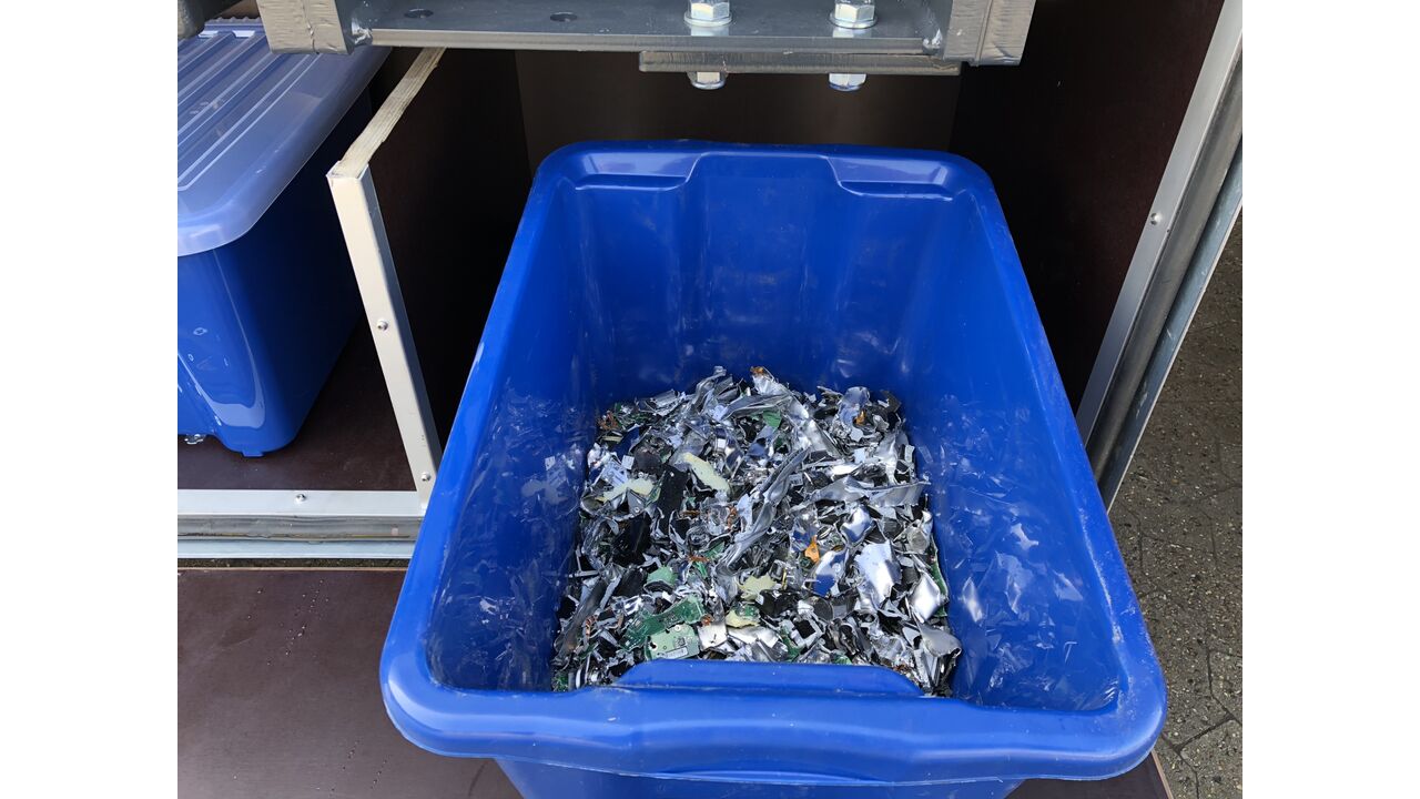 ReTec has developed a small hard drive shredder for its mobile security shredding plants, which can be integrated into the trailer if the customer wants it.