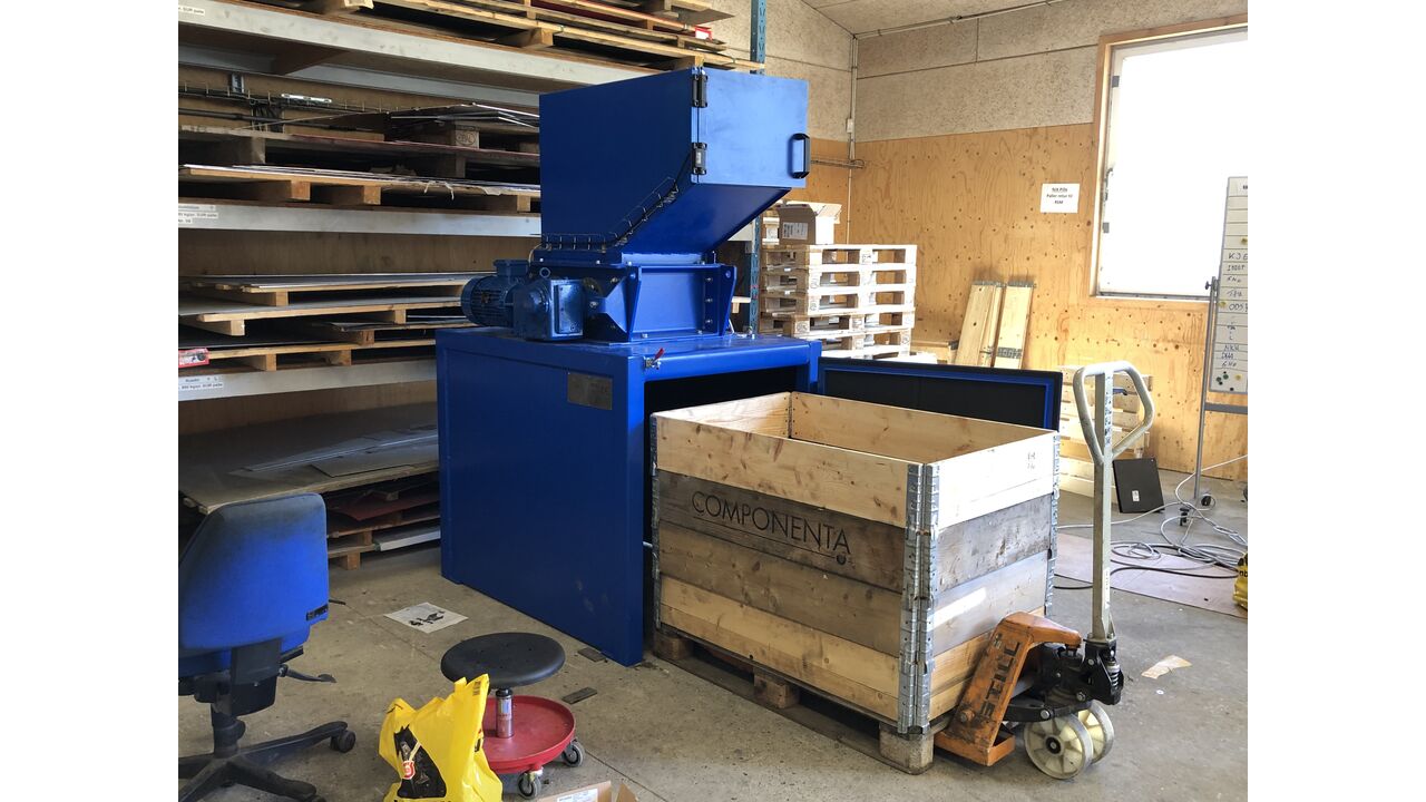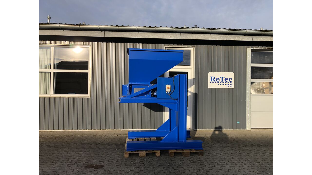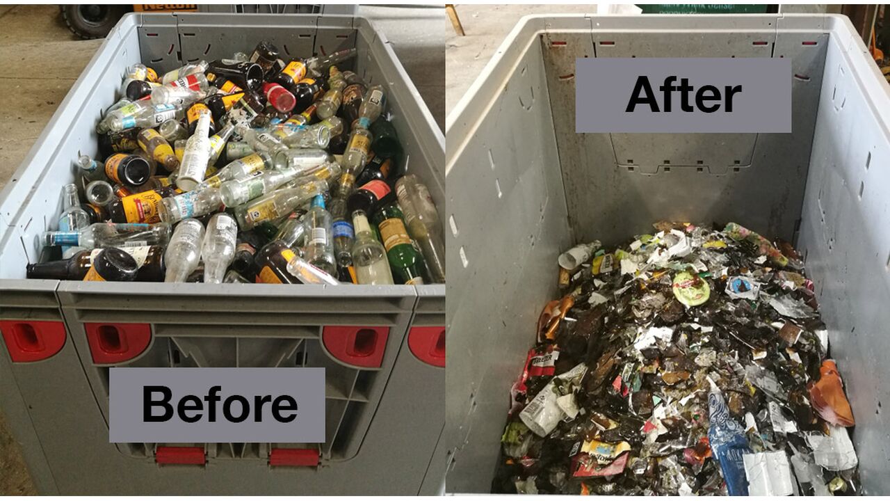 The standard glass bottle crusher from ReTec comes with a hopper installed on the top of the machine and has a capacity of approx. 8-12 m3/h and a volume reduction of 3:1.